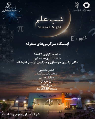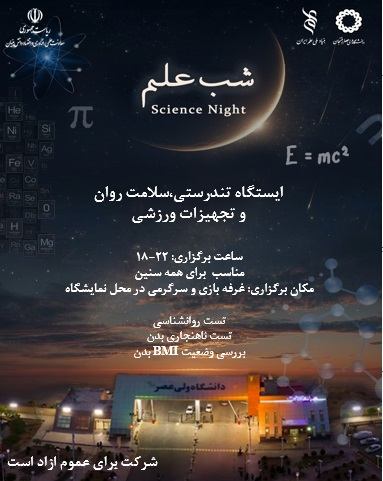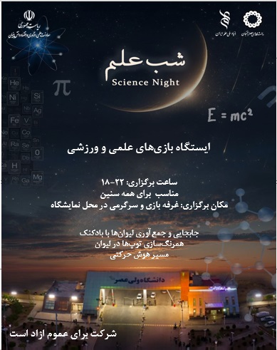 شب علم دانشگاه ولیعصر (عج) رفسنجان تلاش میکند تا شور علمی را در دل جوانان زنده کند، محیطی برای تبادل تجربه و اندیشه فراهم آورد و بستری بسازد که علم نه فقط در آزمایشگاه، بلکه در زندگی مردم، صنعت شهر و آینده منطقه جریان یابد. در این شب، شما شاهد ترکیبی از نمایشگاههای علمی، کارگاههای آموزشی، ارائههای پژوهشی، گفتوگو با متخصصان، برنامههای تعاملی و تجربههای علمی جذاب خواهید بود؛ تجربهای که میتواند یادگاری ماندگار از لمس علم و نوآوری باشد.