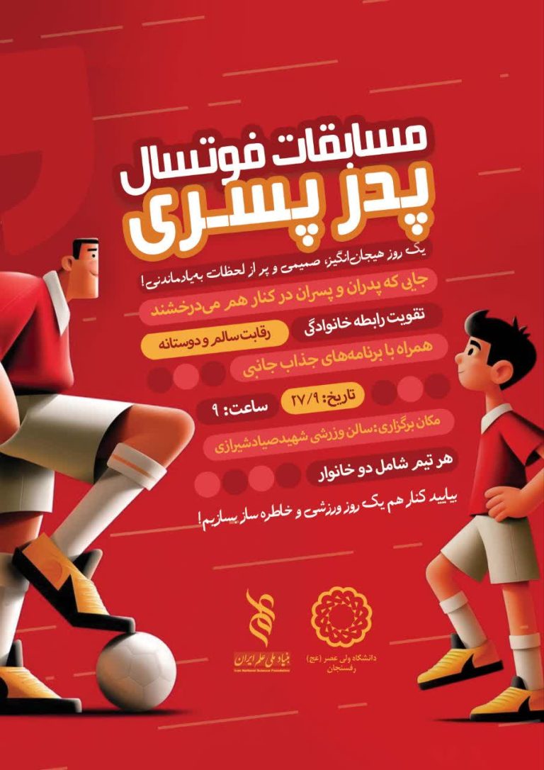 مسابقه فوتبال پدر و پسر با هدف تقویت رابطهی دوستانه و ورزشی میان پدران و پسران برگزار میشود. در این مسابقه، شرکتکنندگان باید مهارتهای فردی و تیمی خود را در قالب بازی و همکاریهای ورزشی به نمایش بگذارند. این مسابقه به منظور ایجاد لحظاتی شاد، افزایش روحیه ورزشدوستی، و تقویت هماهنگی بدنی و ذهنی کودکان طراحی شده است.